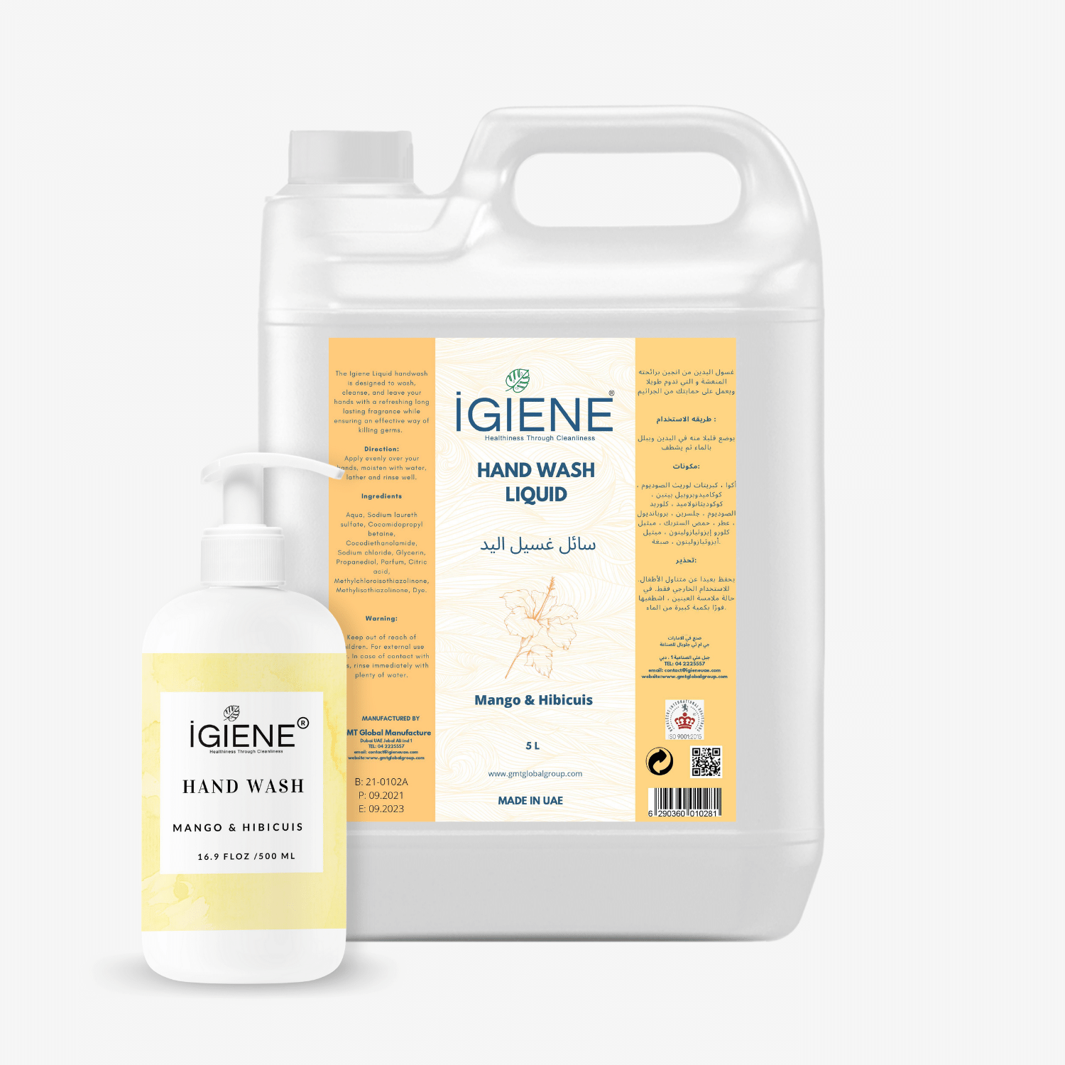The Igiene Liquid handwash is designed to wash, cleanse, and leave your hands with a refreshing long-lasting fragrance while ensuring an effective way of killing germs. Our solution has been developed to softly clean and restore your skin, as well as indulging your hands into an experience that pleases your sensations.